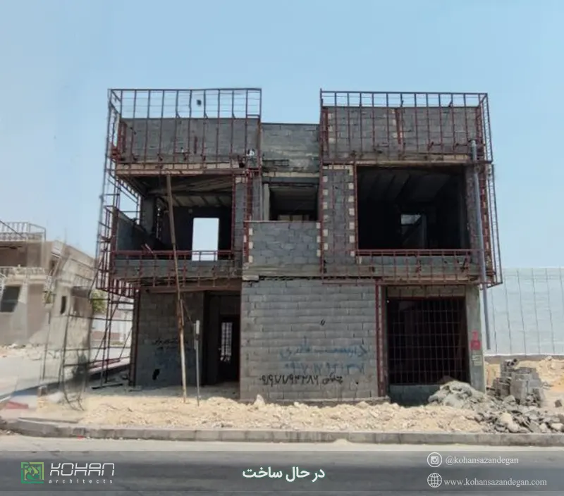 طراحی ویلا دوبلکس در استان بوشهر_کنگان توسط تیم فنی کهن سازندگان. روحیه طراحی ویلای امروزی متاسفانه صرفاً بر مبنای بازی با فرم است بدون اینکه فکر و ایده پخته‌ای در پس آنها باشد. فرم‌پردازی سطحی که بعضاً هیچ ارتباطی با کارایی و عملکرد پلان معماری  یا ارتباط با منظر شهری ندارد، بلکه فقط جعبه‌هایی که با زبان تجریدی هنر مدرن در کنار کارآمد بودنشان باعث شده‌ اکثر آنها شبیه هم شدند و بعد از مدتی چشم مخاطب خسته شده و دنبال اثری با رویکرد و محتوای عمیق که دارای درون مایه و ارائه حرف جدیدی برای مخاطب خود داشته باشد، میگردند. این ویلا به واسطه اعلام موضع در برابر این عوامل، شخصیت خود را تعریف می‌کند. پروژه در تلاش برای آفریدن معماری، فاصله گرفتن از جعبه‌های تجریدی جهان شمول و بیان حرف مختص به خود می‌باشد.