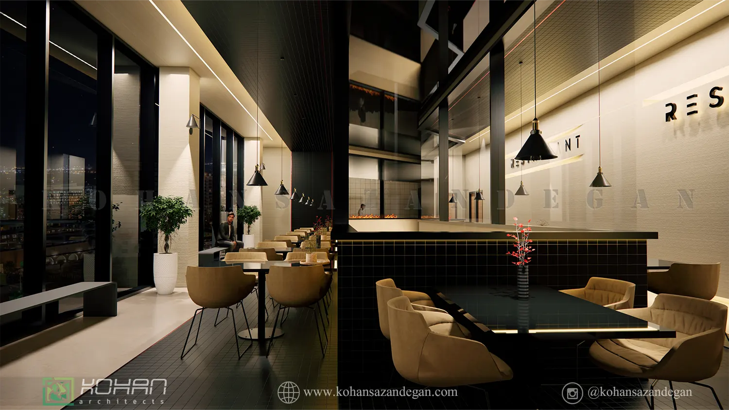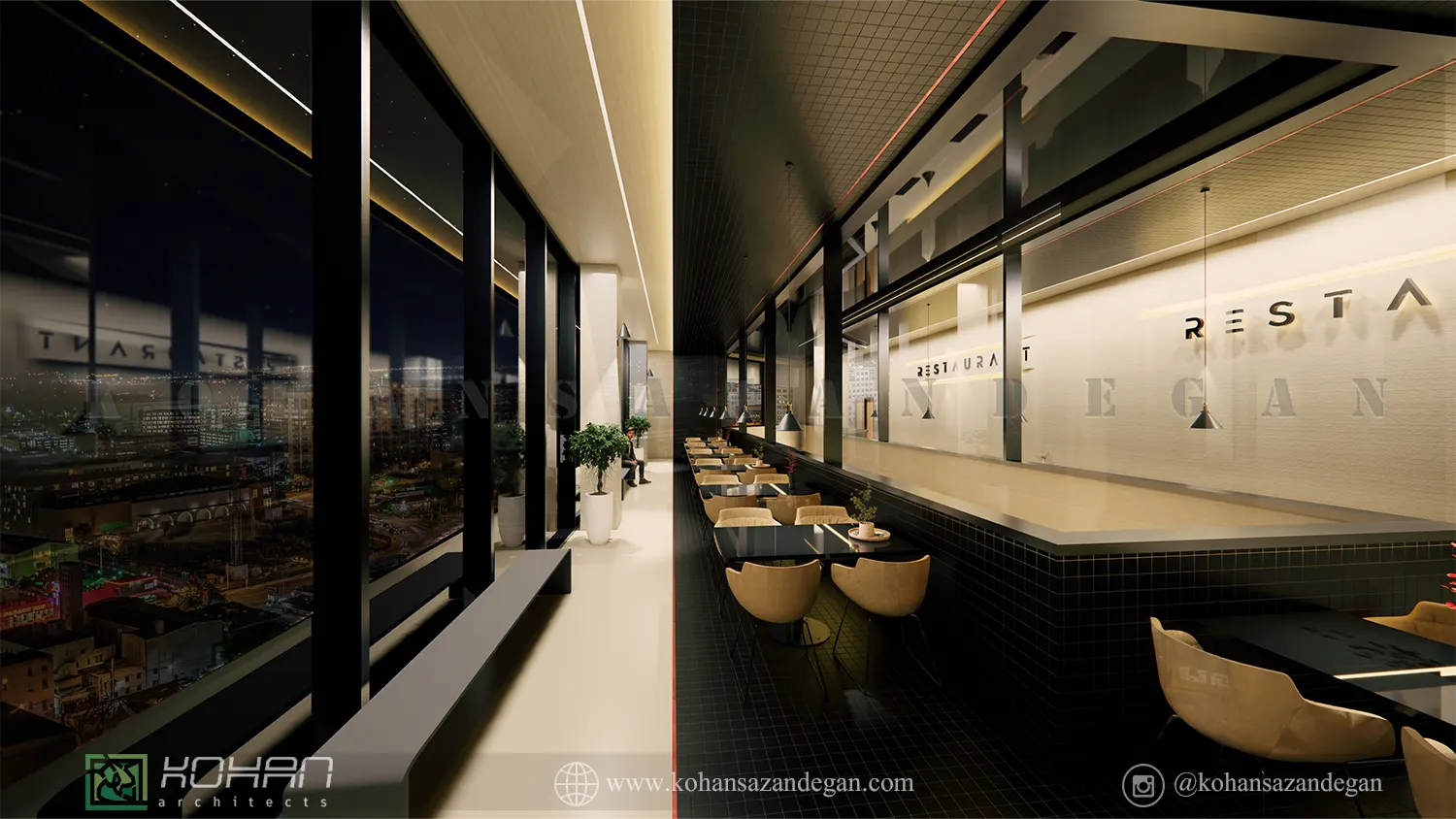 یکی از نکات مهم در این پروژه، تعامل این ساختمان با شهر و مخاطبانش است؛ از لحاظ فرمی بسیار برونگرا و قابل فهم برای مخاطبان است و آنها میتوانند عملکرد آن را به وضوح درک و دریافت کنند. علاوه بر این برونگرایی، در بخش بالایی مجتمع، یعنی در طبقه رستوران، حیاط درونگرایی وجود دارد که حس محرمیت را به آن فضا منتقل میکند. همین امر موجب دریافت حسهای متضاد از دل یک مجموعه شده و همچنین سبب جذابیت و خاطرهسازی برای مخاطب میشود.