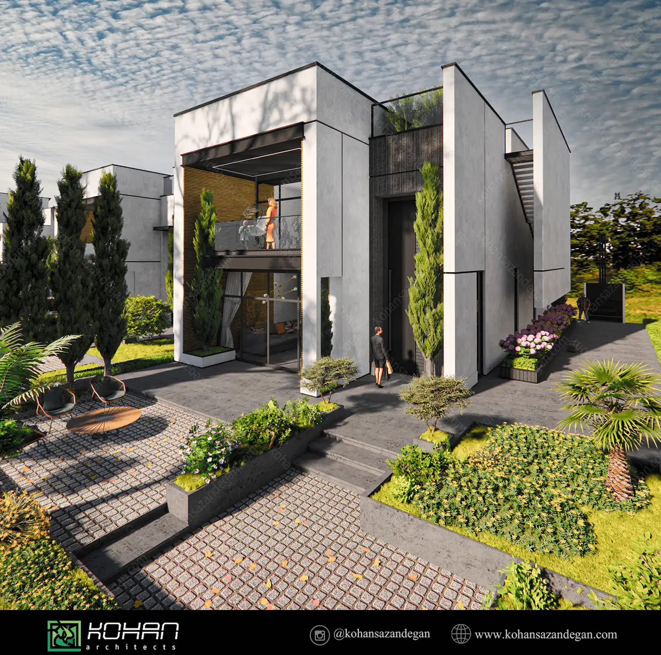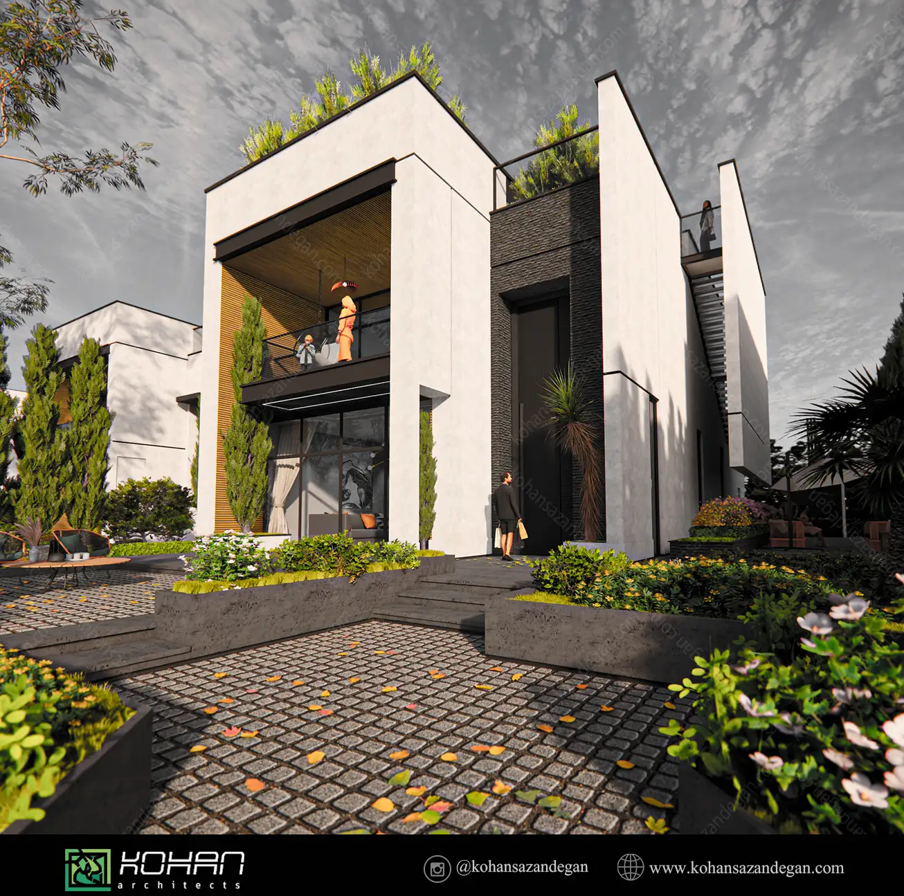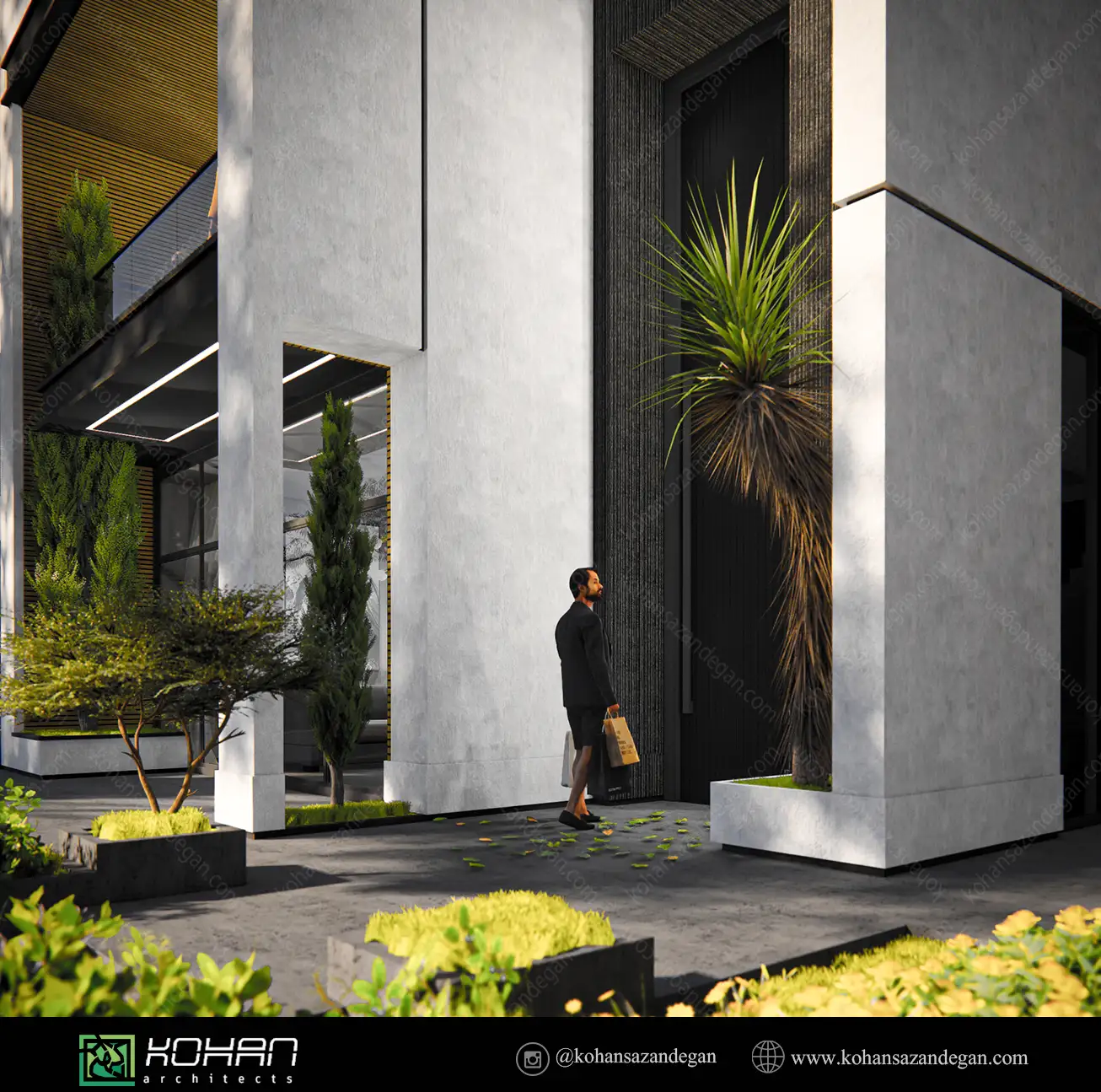 این ویلا با رویکردی متفاوت نسبت به طراحی خانههای ویلایی، موفق شده تا در عین وفاداری به اصول زیباییشناسی و عملکردی، بنایی خلق کند که سادگی، وقار، و تمایز را بهصورت همزمان در خود دارد. ورودی شاخص و باابهت، مخاطب را از همان ابتدا با حس عظمت بنا آشنا میسازد. فرم کلی ویلا بهصورت مکعبهای ساده اما خوشتناسب شکل گرفته که با استفاده هوشمندانه از مصالح، رنگ و نور، جلوهای مدرن و چشمگیر یافتهاند.