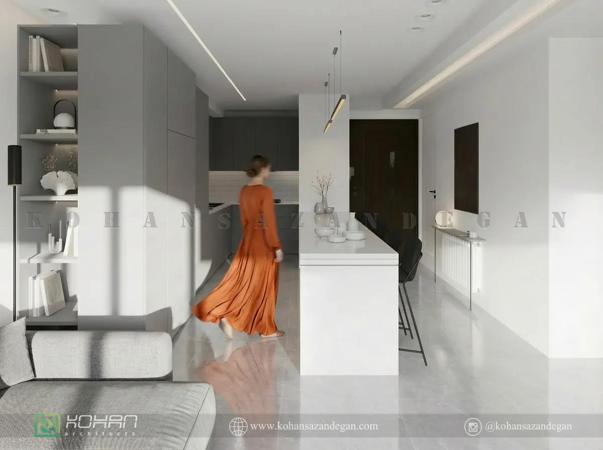 پروژه طراحی داخلی و بازسازی منزل با متراژ 90 متر واقع در ساری، توسط تیم فنی شرکت کهنسازندگان انجام شده است. این پروژه یک واحد خام از آپارتمانی نوساز و بدون هیچ گونه ایده طراحی و دکوراسیون داخلی بود. در جلسه هم اندیشی با کارفرما، سلیقه، علایق و سبک زندگی آنها بررسی شد و همچنین با توجه به پتانسیل بنا و بودجه موردنظر، روند طراحی پروژه شکل گرفت تا در نهایت به تایید کارفرما رسید.
